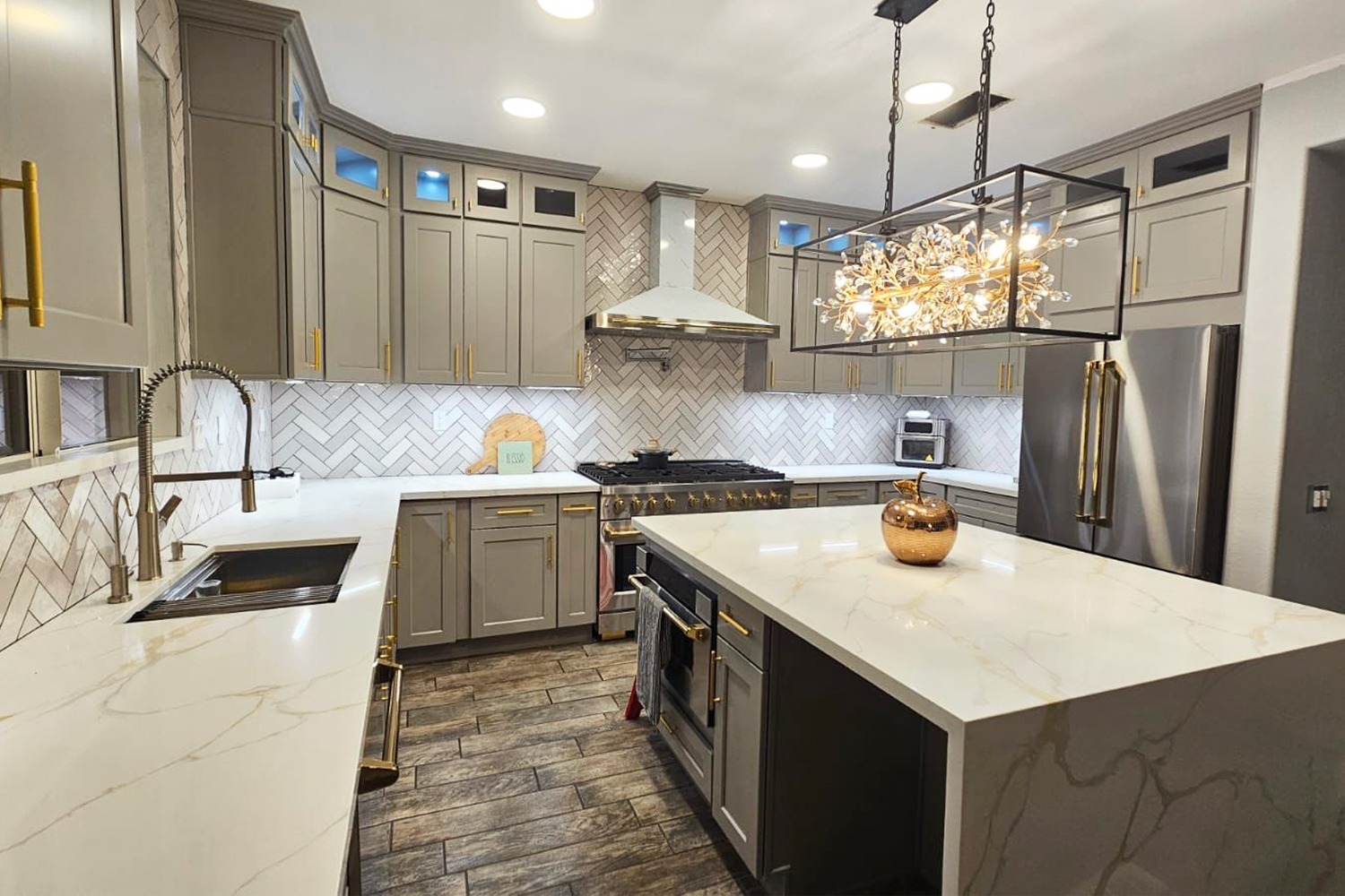 Our team is passionate about bringing your dream kitchen to life with premium prefabricated cabinets, quartz and granite countertops, custom backsplashes, sinks, plumbing fixtures, appliances, and complete 3D design renderings that help you visualize the transformation before it begins.